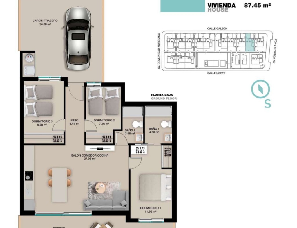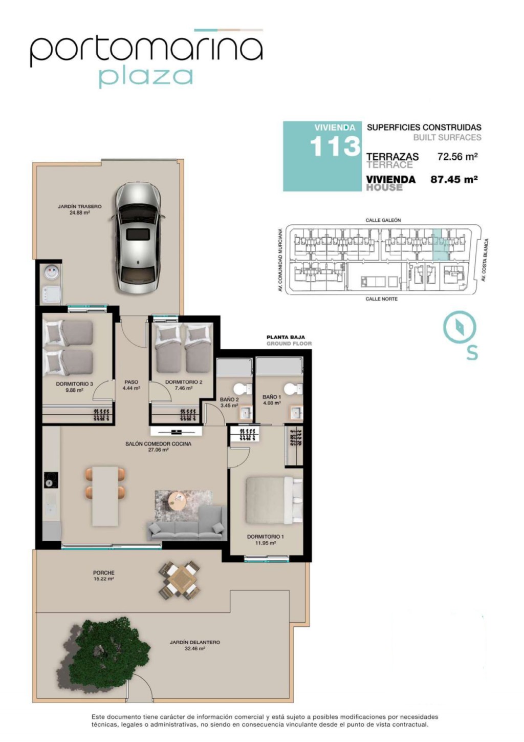 Bovendien bevindt dit wooncomplex zich in een bevoorrechte omgeving in Pilar de la Horadada, op korte afstand van alle noodzakelijke voorzieningen zoals supermarkten, winkels, restaurants en medische centra, en op slechts enkele minuten rijden van de fijnzandstranden van de Middellandse Zee.